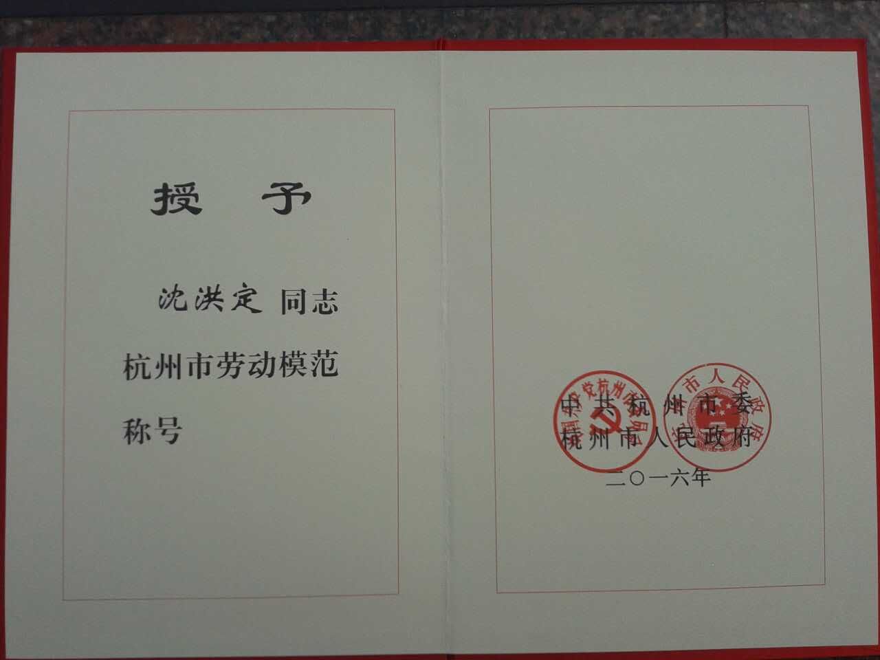 勞動最光榮,在“五一”國際勞動節來臨之際,杭州市慶祝“五一”國際勞動節暨勞動模范表彰大會隆重召開。表彰大會共授予杭州市個人勞動模范299名、杭州市模范集體150個,其中我公司沈洪定同志榮獲杭州市勞動模范稱號。