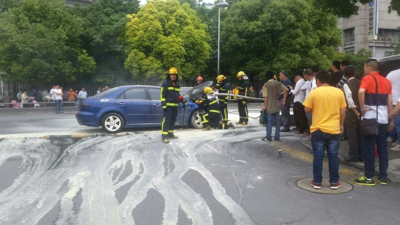 2016年5月6日上午10點35分左右,杭州中石化杭然能源有限公司清泰門油氣合建站通道口外,一輛藍色馬自達轎車前部突然起火。當班員工發現后,立即啟動應急預案。站長第一時間帶領員工使用站內滅火器進行滅火,使得火勢無法蔓延,為消防人員趕赴現場救火爭取了寶貴的時間。同時,一名員工立即關閉急停,切斷動力電源,暫停一切加油加氣操作,另一立即撥打119報警電話。現場其他員工及時疏散站內車輛和人員,現場做好警戒工作。