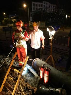 割接當天,胥東董事長親臨現場,詳細詢問了鳳凰公園站工程的概況以及地鐵工程涉及燃氣遷改的情況。