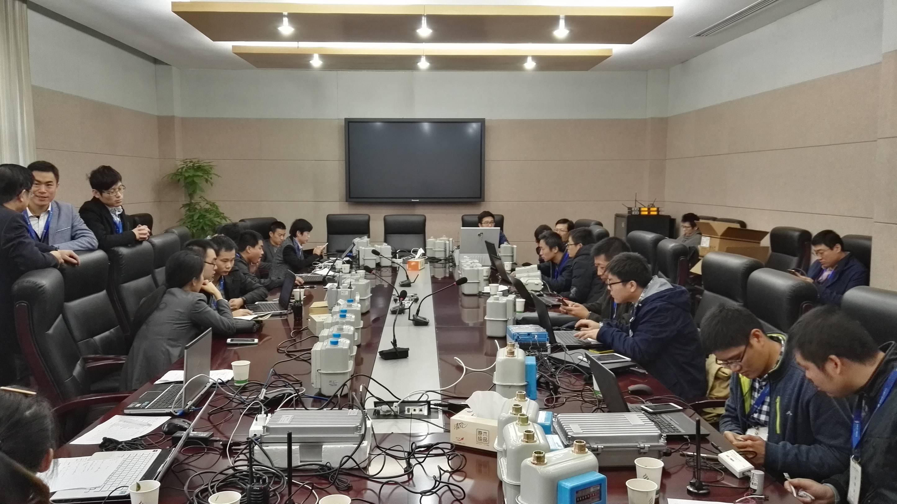 11月16日,智能表擴頻項目集中器與上位軟件互聯互通現場測試工作在七堡3號樓2樓小會議室開展。
