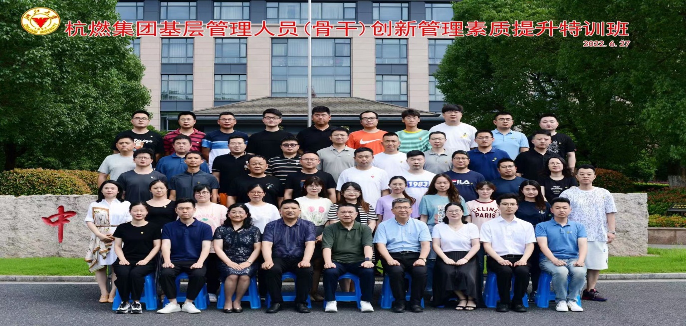 2022年6月27日,杭燃集團第五期基層管理人員(骨干)創新素質提升特訓班在臨安區委黨校正式啟幕,來自集團10個單位40名基層管理人員(骨干)參加特訓。集團黨委書記、董事長蘆俊,黨委副書記、監事會主席、工會主席俞崇勛,浙江大學繼續教育學院黨委副書記、院長劉繼榮出席開班式。